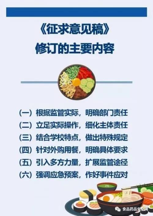 《征求意见稿》共7章53条,学校食堂咋管理?外购食品有哪些要求?食品安全如何进行监督与责任追究?快跟小编一起来看↓↓↓