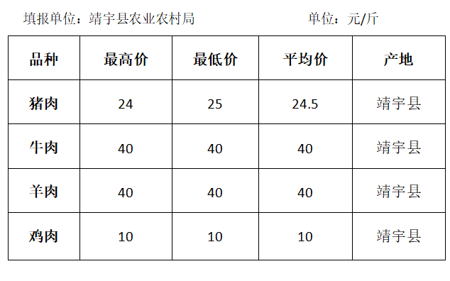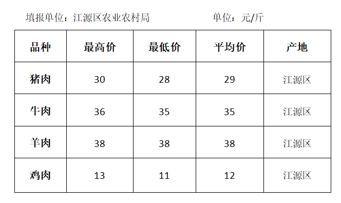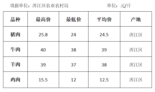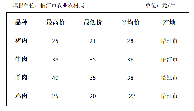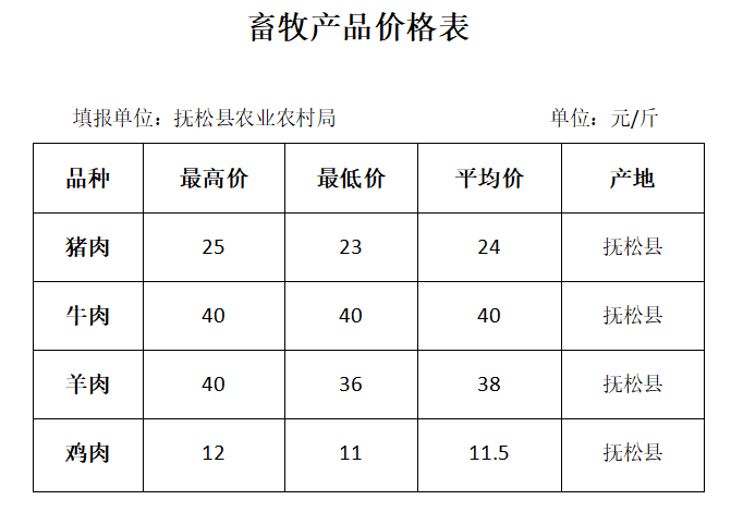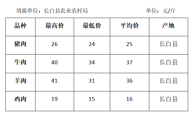 白山市2020年6月份各县(市、区)畜牧产品价格表