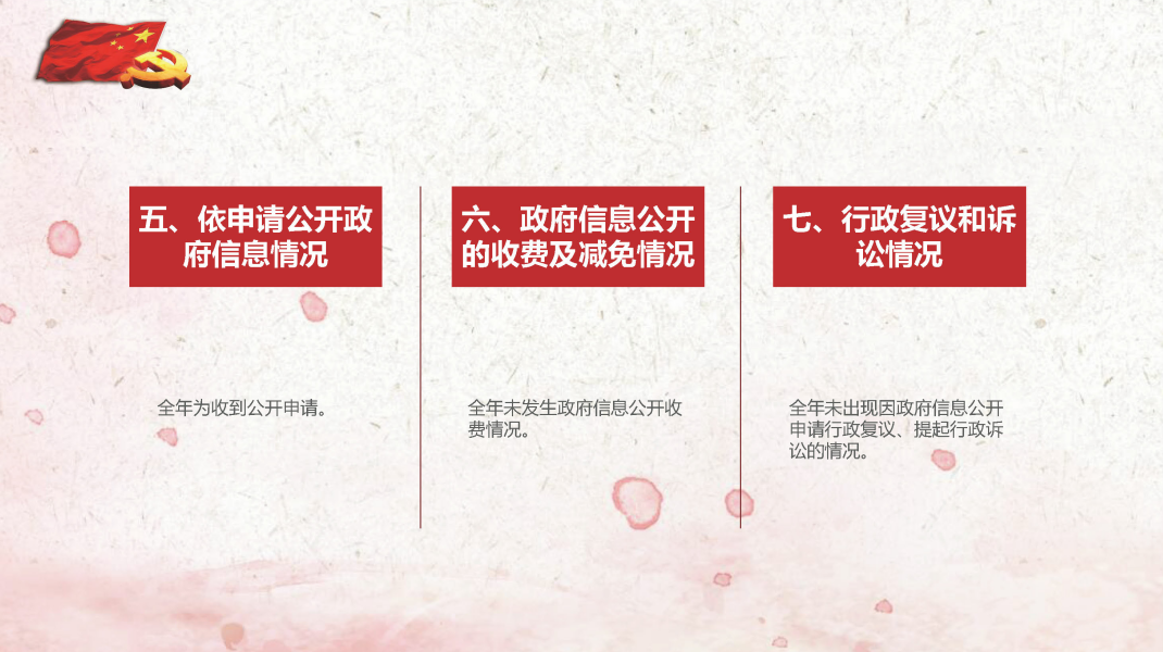 全年未出现因政府信息公开申请行政复议、提起行政诉讼的情况。